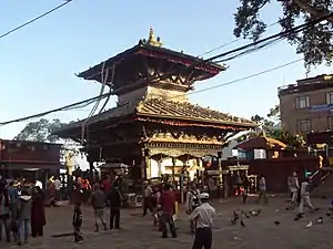 - Manakamana Temple. Dedicated to the Goddess Durga, this temple can be reached by a cable car running from the Kathmandu-Pokhara Highway. The temple receives up to 3,000 visitors daily, which increases to tens of thousands during festival times. The high elevation also allows fantastic views over the Himalayas.