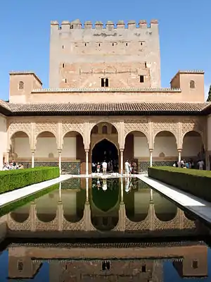 - 🌍 Palacios Nazaries. The Nasrid royal palace and the primary (and thus most crowded) attraction of the Alhambra complex, the palace is an impressive, at times breathtakingly beautiful work of architecture. Visitors get to see spectacular archways and windows, carved wooden ceilings, intricate molded-plaster work and colourful ceramic tiles at nearly every turn as they meander between lovely rooms and lush courtyards. Everyone starts their tour in the Mexuar, a set of administrative rooms with a beautiful prayer room and a small square courtyard with the golden Façade of Comares, before emerging in the Court of the Myrtles, a rectangular courtyard with a long pool of water flanked on each side by a myrtle hedge (hence the name). At the end of the courtyard you can enter a room to view the twelve Lion Statues from the fountain in the Court of the Lions, which is undergoing renovation. Cross to the other end of the Court of the Myrtles to enter the Ship Room, with its spectacular carved wooden ceiling in the shape of an upside-down hull, and the Chamber of the Ambassadors, the palace's largest and perhaps most spectacular room, which once functioned as the throne room and features a star-studded wooden ceiling, intricately carved stucco walls and beautiful arched windows. From here you'll pass through a series of small rooms, including the Washington Irving Room, where Washington Irving wrote Tales of the Alhambra, as well as down an open-air hallway with an excellent view of an adjacent courtyard (the Court of Linda-Raja) and the Albayzín. Passing by the old bath house you'll enter the Hall of the Two Sisters, a spectacular domed room with an intricate stucco ceiling and lovely views of the Court of Linda-Raja. From here you can navigate around the edge of the Court of the Lions (under renovation) to the Hall of the Abencerrages, structurally similar to the Hall of the Two Sisters. At this point you can exit the palace, which will place you near the entrance to the Partal Gardens.