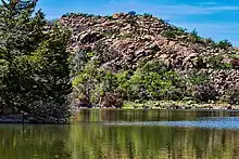 - 🌍 Quartz Mountain State Park, 14722 OK-44A, Lone Wolf, ☏ +1 580 563-2238. Daily 8AM-6PM. Rough and tumble country in western Oklahoma. Hiking, swimming, fishing, boating, camping.