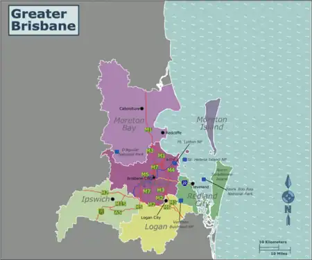 | City | Brisbane | Ipswich | Logan | Moreton Bay | Redlands |