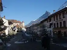 Gruyères is a town in Switzerland and the capital of the district of Gruyère in the canton of Fribourg in Switzerland. Its German name is Greyerz. This medieval town is an important tourist location in the upper valley of the Saane river, and gives its name to the well-known Gruyère cheese. While its most famous landmark (other than the cheese) is the castle, the old town is lovely as well.
