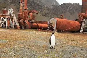 Grytviken is a former whaling station on South Georgia Island. It was founded in 1904 as it had the best harbour on this storm-wracked island, with flat ice-free terrain and a fresh water supply. It became South Georgia's principal station and settlement, and a port-of-call for ships heading to Antarctica. The name is Swedish for "Pot Bay" as the settlers found big pots in which earlier parties had boiled up seal fat to extract the oil. 20th-century whaling destroyed the whale populations, and Grytviken was abandoned in 1966. It now has no resident population, but a few staff stay here in summer to manage visitors.