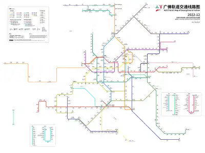 Guangfo Line is China's first intercity metro, connecting Guangzhou to downtown Foshan. Central Foshan can be reached in approximately 45–60 minutes from central Guangzhou. Transfers from GZ metro lines and Yangchengtong cards are accepted.