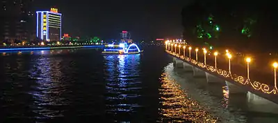 | Haizhu (海珠 Hǎizhū or 河南 Honam(pronounced traditionally)) Home to the Canton Tower, the Canton Fair Pavilion and Exhibition Center, Sun Yat-Sen University, and the Pearl River Promenade. |