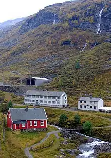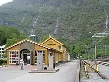 Flåm is a village in Sogn og Fjordane county, at the innermost point of the Aurlandsfjord arm of the Sognefjord. Flåm is among the busiest cruise ports in Norway. This article also covers the neighbouring villages of Aurlandsvangen, Gudvangen and Undredal, located approximately 10 km (6 mi) away in either direction; and Myrdal station at the junction of Bergen railway and Flåm railway. The small village of Gudvangen is at the other end of the popular boat ride Flåm-Gudvangen. The area is known for iconic fjords, numerous tall waterfalls, canynon-like valleys and impressive railway engineering.
