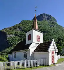 • 🌍 Flåm church (Flåm kyrkje), Flåm (a few miles up the river, in the valley, in the view of Flåmbana). The little 1670 church has richly decorated interior.