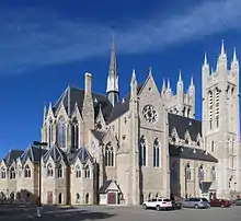 - π Basilica of Our Lady Immaculate, 28 Norfolk Street. Stands high above the streetscape, overlooking the city. Built of local limestone in Gothic Revival style. Construction began 1877, completed in 1926.