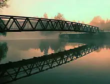 - π Timberframe pedestrian covered bridge (near Wyndham St S & York Rd). Built in 1992 by 400 Timber Framers Guild volunteers. A 120 ft (37 m) pedestrian lattice covered bridge over the Speed River.
