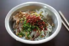 - Rice Noodles (Mifen) is a local delicacy, also available as stir-fried (Chaofen). This is served everywhere, but try to avoid the joints near the train station. Traditionally the noodle and the topping is first eaten without soup, and once the topping has run out there is usually a pot of soup to add flavour to the rest of your noodles. There are also various pickles and condiments that you can add to your noodles. Servings are sold and priced in small, medium, and large. (一两;二两;三两) The small is more of snack, so start with the medium. There is a good spot in the street behind the Zhongshan Hotel.