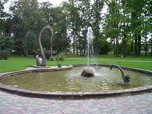 A swan fountain in a park in Gulbene