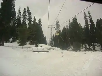 Gulmarg is a city of about 2,000 people (2011) in the Kashmir Valley. It is noted for lush green meadows and wildflowers in summer and endless snow fields during winter. It is a hub for winter sports activities. It also houses a high-altitude cable car, popularly known as gondola.