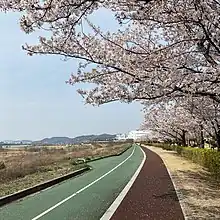 Nakdonggang Sports Park. This is a sports facility. It is a stadium equipped with natural grass fields and mondo tracks, and was completed on 7 May 2012. There are many stadiums such as a general stadium, a soccer field, a baseball field, a futsal field, a foot volleyball court, and a badminton court. Depending on the season, various flowers such as pink muley and cosmos bloom beautifully.