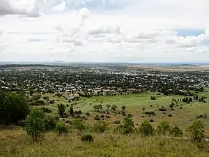 - 🌍 Pensioners Hill Lookout, Lloyd Road (Oxley Highway westbound, turn right onto Borthistle Road then right again onto Lloyd Road, entrance at the bottom of the hill on the right). Wide open views of Gunnedah and the surrounding district. Sculptures (see here), a rotunda, picnic tables, and barbecues at the top. Unknown if the path from the entrance to the top is wheelchair accessible. Free.