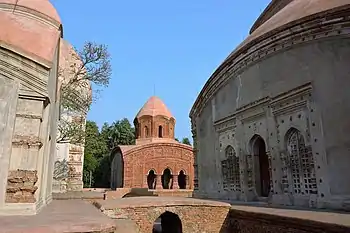 - 🌍 Guptipara temple complex. It houses four Vaishnava (of Lord Vishnu) temples: Chaitanya, Brindabanchandra, Ramchandra and Krishnachandra. The Ramchandra Temples contain many terracotta works, and the structures bear characteristics of the Bengal school of architecture, with carvings depicting scenes from the epics and Puranas.