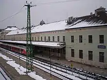 • 🌍 Railway Station (Vasútállomás), Révai Miklós utca, 4-6 (city centre), +36 1 239-1224. Domestic cash daily 03:10-23:00. Győr has a fast railway connection with Budapest (the fastest in Hungary), taking as little as 1 hour 15 minutes. InterCity and RailJet trains run this route. Győr is also easily reachable by train from Austria: from Vienna (in one and a half hour, eight direct per day). From Bratislava (Slovakia) (must change at least one time). Services: luggage lockers (Ft 400 per 24 hours a small, Ft 600 for a big), e-ticket acceptance point (about buying train ticket read more here: Hungary#Get around), lifts for disabled people, city/intercity bus stop. Nearby at Révai Miklós utca, 8: an OTP ATM working 24 hr. Paying for ticket by card is usually also possible to pay with euro (small bills please) and the change get back in forints.