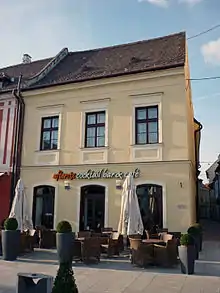 • 🌍 Listed buildings of Kiraly Street (Egykori Fekete Sas Fogadó), Király utca 8. and 10. (centre). At #8 (the Baross Street corner) is the former First Savings Bank of Győr (Korábbi Győri Első Takarékpénztár) made in Romantic style, 1860-1861, designed by Antal Fruman; #10 Former Black Eagle Inn (Egykori Fekete Sas Fogadó) Two-storey baroque building; #17 Former Esterhazy Palace (Egykori Esterházy-palota) An one-storey, baroque palace with corner balcony. Now here is the Municipal Museum of Art. (See above for details)