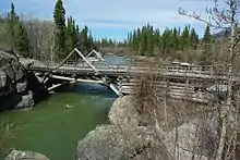 - Highway 1 (Alaska Highway) (historical mile 635), approximately 154 km (96 mi) from west of Whitehorse.
