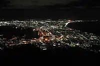- 🌍 Mount Hakodate (函館山 hakodate-yama, 334m) (A ropeway will take you up for ¥780/1280 one-way/return. There are also buses (by Hakodate Bus) from platform 4 of the main bus station in front of Hakodate Station in summer season (mid-April to mid-November). A trip back and forth will cost ¥400 each, however, the Day Pass is valid, making it a great deal! The bus frequently stops at stunning points along its venture up - this can be important as the top station is often covered in clouds.). Offers spectacular views of the city of Hakodate in clear weather and offers, according to locals, one of the three best night views of not merely Japan but the entire world (the other claimants being Naples and Hong Kong). The busiest time is during sunset, so if you plan to take a sunset photograph, be ready to arrive early and claim your spot... and be prepared for a 40-minute waiting queue to catch the cable car back from the summit. Ropeway: ¥780/1280 one-way/return; Bus: ¥400 return or included in Day Pass.