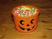 - Candy (UK: sweets Oceania: lollies) is one of the big items at Halloween. If you're travelling, you won't be at home to hand out goodies to trick-or-treaters, but otherwise expect to be pressured to buy large quantities of small, individually-packaged sugary junk food items to shell out on Halloween. Have some discipline otherwise you may eat all of it before the trick or treaters arrive.