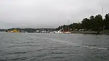 From Nagu the fairway leads to the north, by the Finnish speaking Rymättylä. First you cross Ominaisfjärden (Finnish: Ominaistenselkä), with a maze of fairways, including the shipping and cruise ferry lanes to Turku and Naantali.