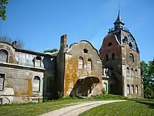 • 🌍 Arkna Manor (Arkna mõis). An interesting manor house, built in 1877-79 in the style of eclecticism. The porch, for example, bears a clear shade of neo-Gothic, and the building itself is closer to classicism. Nowadays, the estate is privately owned and essentially abandoned.