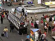 Harry Reid International Airport (LAS IATA), formerly known as McCarran International Airport, is the main airport of Las Vegas. The gate areas are famously full of slot machines, fittingly enough for Sin City.
