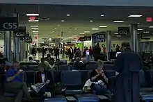 • 🌍 Chick-fil-A (Gate C21). M 10:30AM-6PM, Tu-Sa 6:30AM-10PM, closed Su. This southern fast-food chain serves chicken sandwiches, chicken nuggets, and waffle fries. Displaced southerners flock here for a taste of their former home, and it's an easy chance for foreign travellers to try something unique. An additional bonus is that they use peanut oil that's processed to remove all allergens, so people with peanut allergies can generally eat here without any problems (but check with your doctor first, of course).