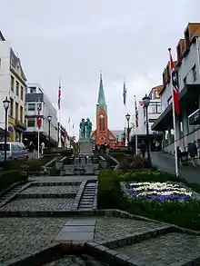 The city center of Haugesund is compact; the streets are on a grid and easy to navigate by foot. The main north-south street is Haraldsgata, which is for pedestrian only from Skjoldavegen (north) to Åsbygata (south). The parallel street Sørhauggata is one way south, while Strandgata is one-way north. The two blocks of Torggata between Sørhauggata and Strandgata is also pedestrianized.