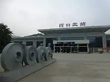 The old narrow-gauge 🌍 Hekou Station (河口站). still stands near the railway bridge across the border river, even though there has been no passenger service there for many years. A train ticket office (selling tickets for all trains on China's national network) operates in a building across the street from that station.