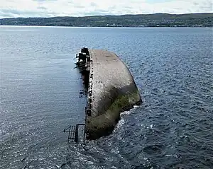 - π Sugar Boat is the local name for the long object seen out in the Clyde, the upturned wreck of MV Captayannis. In 1974 she was waiting to unload sugar at Greenock when a storm forced her against the anchor chains of a tanker, which sliced her below the waterline. The captain beached her and the crew got off safely but the ship overturned. No-one could be found responsible for removing the wreck, so there she lies.