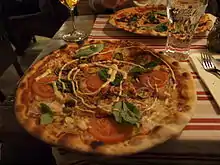 Note that ordering is done with an automated machine, and the restaurant does not accept cash payments. Hamburgers around €12.50. - 🌍 Classic Pizza, Aleksanterinkatu 52, ☏ +358 9 121-3838. A classy, fashionable pizzeria with a wide variety of pizzas on the menu. Some of the toppings might be rather unusual, such as grilled chicken, pickled cucumbers, beetroot, crayfish, bratwurst, coconut milk, or Finnish leipäjuusto cheese. But the end result is a tasty culinary treat anyway. For dessert, there's a pizza with ice cream and fresh fruit.