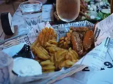 Hot chicken wings at PPK. - 🌍 PPK, Pakilantie 82, ☏ +358 9 757-0003. 10:30–22:00 mostly. The name means "pizza and kebab in Pakila" but the restaurant also serves steaks, hamburgers, salads and chicken wings. Sports events shown on a big TV screen and various live events.