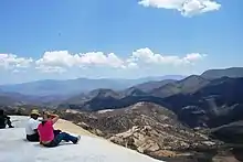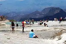 Hierve el Agua (Spanish for "the water boils") consists of several natural rock formations that resemble cascades of water due to the accumulation of minerals deposited by spring water that has flowed down the rocks over thousands of years. It is one of only a few calcified waterfalls in the world.