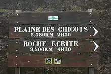 The trails are well signposted, and use minimal French, so not knowing any French will mostly do fine when it comes to sign reading. However, you should take note that the times are marked in [no. of hours]h[no. of minutes] – so a trail that takes 3.5 hours will usually read 3h30. It does not refer to 03:30 (even though in the French language it can mean either).