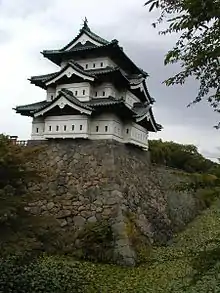 - 🌍 Hirosaki Castle (弘前城; Hirosaki-jō) (The nearest bus stop is Shiyakusho-mae, 15 min from Hirosaki Station.). Apr 1-Nov 23: 09:00-17:00. Hirosaki Castle was completed in 1611 and housed several generations of the Tsugaru Clan. The large 49.2-hectare grounds include three concentric moats and earthen fortifications that surround the remains of the inner castle area: five castle gates, three corner keeps and a castle tower. After the original five-story tower was struck by lightning and burned down, the current three-storied Tenshukaku tower was built to replace it. The castle grounds are now a public park famous nationwide for its cherry blossoms. The castle tower houses a museum featuring samurai-era swords, suits of armor, helmets and other items related to the castle's history. See also Japanese castles. Adults ¥300; children ¥100 (including admission to Tenshukaku Castle Tower Museum).