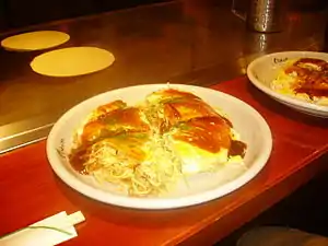 Hiroshima is famous for its style of okonomiyaki (お好み焼き), which literally means "cook it as you like it". Often (and somewhat misleadingly) called "Japanese pizza", it is better described as a type of savory pancake made with egg, cabbage, soba noodles, and meat, seafood or cheese. It is grilled in layers on a hot plate in front of you and slathered liberally with okonomiyaki sauce, with optional extras such as mayonnaise, pickled ginger, and seaweed. It sounds and looks like a mess, but is very tasty and filling. To give you a sense of the civic pride involved here, the Hiroshima tourist information office offers a map with a whopping 97 shops serving okonomiyaki within city limits, and reports have several hundred more in the area. Micchan (みっちゃん) is the most famous of the Hiroshima- style okonomiyaki restaurants with long histories. It has a few branches in and around the center of Hiroshima.