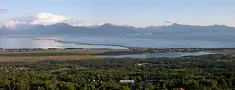 Homer is a city on the Kenai Peninsula in Southcentral Alaska and is long known as the "Halibut Fishing Capital of the World." It is also known as the "End of the Road". The most westerly point on the North American contiguous highway system is in nearby Anchor Point. There the road (AK 1) turns southeast and ends at the tip of the Homer Spit, a natural sandbar stretching some four miles into Kachemak Bay, at the End of the Road Park.