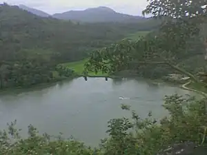 Honnamana Kere is a holy and tourist place located in Daddamalthe near Sulimalthe village 6 km away from Somwarpet town. The lake (see picture) is surrounded by beautiful landscape including coffee estates and cliffs. Special pooja (prayer ritual) is offered to the Goddess Honnamma on the Gowri festival every year. Thousands of devotees come to this sacred place on this day and offers pooja to the Goddess Honnamma followed by climbing the cliff. 'Bagina' which consists of sacred belongings of the Goddess is left in the lake. A new temple was built several years back with the aim to improve the place and offer better facilities to the devotees, this was possible by the financial assistance of the people living in the surrounding villages.