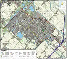 Hoofddorp is a city part of the Haarlemmermeer polder in North Holland, Netherlands. It had 77,000 inhabitants in 2020.