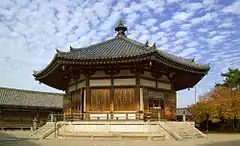 - Yumedono (夢殿, "Dream Pavilion"). Constructed in 739 on the site of the building where Prince Shotoku once lived. The Kuze Kannon statue within is only shown to visitors between April 11-May 18 and October 22-November 23.