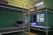 Hostels, also known as youth hostels, backpackers' hostels, or just backpackers, are a form of cheap accommodation for travellers, costing a fraction of what you'd pay at a hotel. Instead of having a room to themselves, hostel-goers typically sleep in a bunk in a "dormitory-style" room shared with other guests. Rooms can be mixed or single-sex, depending on the hostel and the guest's preference. Shared rooms typically include lockers for storing backpacks or valuables, but you may have to bring your own padlock. Some hostels also offer private rooms, which are more expensive than bunks but still generally cheaper than a hotel.