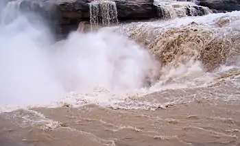 Huanghe Hukou Pubu National Park (黄河壶口瀑布, Huánghé Húkǒu Pùbù) is on the Yellow River between Shanxi and Shaanxi provinces.