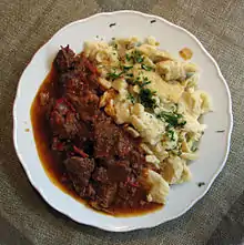 Hungarians are quite proud of their cuisine (Magyar konyha), and most of the time not without reason. Food is usually spicy, but not hot by general standards, and it's tasty rather than healthy: many dishes are prepared with lard or deep-fried. The national spice is paprika, made from ground sweet bell peppers. The national dish is goulash but Hungarians call the thick paprika-laden stew known as goulash elsewhere by the term pörkölt and reserve the term gulyás for a lighter paprika-flavoured soup.