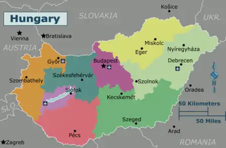 The land border can be crossed to Austria, Slovenia, Croatia, Serbia, Romania, Ukraine and Slovakia.