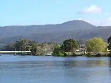 Built in a broad valley, the central feature is the Huon River. On each side are mountains, including Mount Misery (pictured). Native forest is visible in every direction from the town itself. The Mount Misery walk is the easiest place to access rainforest and oldgrowth forest. River access is easy at the esplanade. Playground, toilets, picnic tables.