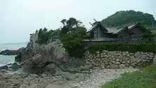 - 🌍 Omi Shrine (大御神社), 1 Hichiya. A small but spectacular shrine perched on some rocks right at the edge of the ocean. The design is very similar to the Great Shrine of Ise, earning Omi Shrine the nickname, the Ise of Miyazaki. This shrine is just next to Isegahama, an easy walk. Omi Shrine is most noted for the saza-ishi (a huge boulder made of naturally fused stones), a dragon egg (huge round stone), and the nearby which contains a smaller shrine. Locals say if you stand in the right spot and look at the slit of the cave entrance, you can see a dragon. The stairs leading down to the cave are really steep. Heels and skirts are not recommended.
