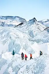 - 🌍 Thórsmörk (Thor's Mark) — Tucked away between three glaciers, Þórsmörk is an incredibly beautiful and relatively isolated area. Icelanders enjoy camping there in the summer. There are many hiking trails all over the area, which provide breathtaking views of the surrounding glaciers and lava formations. It is accessible only by truck or bus: it is a good idea to enquire about trips to Þórsmörk at a tourist information centre.