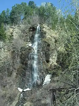 - Idaho Springs Waterfall (walk underneath the I-70 there is a paved trail behind City Hall and follow the trail the Waterfall will be on your left, or just follow clear creek and you will see the waterfall). There is also a waterwheel from the 1800s that is right next to the waterfall.
