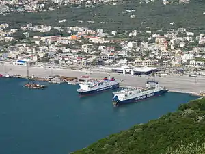 The actual city mainly spreads 2.5km along the coast from the 🌍 International ferry port terminal in the south over the 🌍 domestic terminal (next to the actual city center) up to the 🌍 archeological museum in the north.
