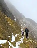 Footprints (routes taken by climbers before you) are often visible on sandy parts of the route, on rocky parts its up to you to decide where to walk. Generally there's no ice on the route, but there's a good chance to encounter snow.